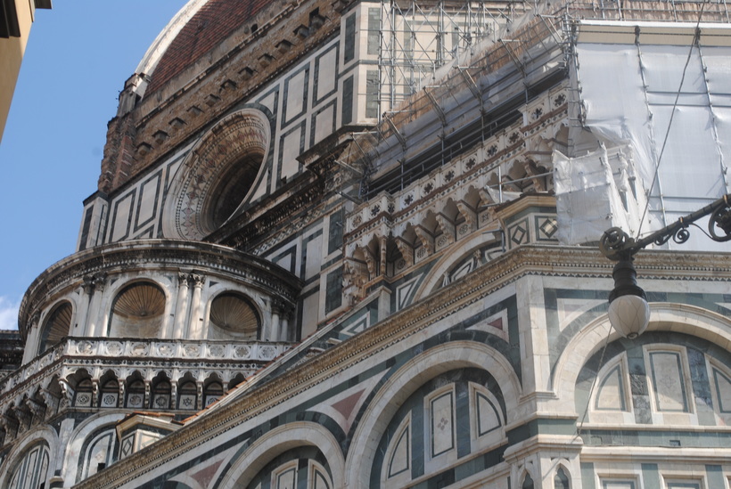Впрочем, самое главное за полдня таки можно осмотреть. Собор Санта-Мария-дель-Фьоре (Дуомо) – визитная карточка города, прекраснейшее сооружение, которое просто невозможно обойти стороной. Такое ощущение, что этот собор тебе непрерывно улыбается. С какой стороны ни подойди, дух захватывает от восхищения. Интерьер богат на детали, как никакой другой: часы Уччелло, различные бюсты и фрески, роскошный баптистерий... Рассказывать подробно – значит углубиться в восторги на несколько часов. Просто обойти, зайти, наверх подняться – все проделать, что можно проделать в этом соборе. Ни о чем не пожалеете.
