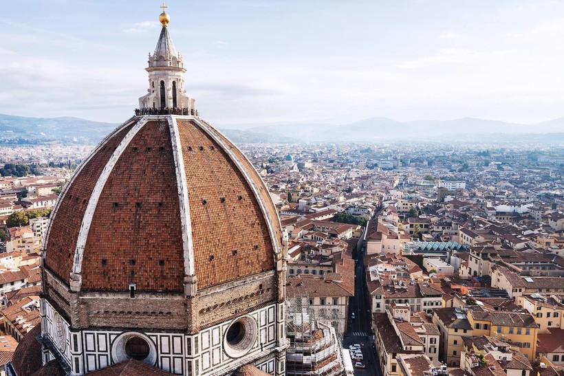 Просто представьте, что вы гуляете по узким улицам Флоренции, и тут они расступаются, и выглядывает этот огромный белоснежный собор с коричневой крышей.