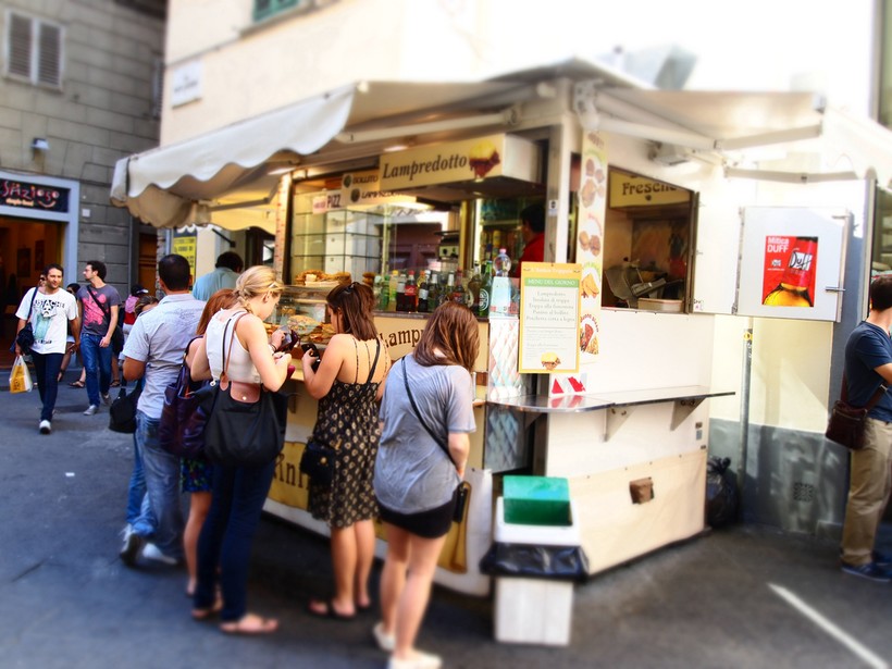 С едой во Флоренции проблем нет. Когда мы поздно вечером уезжали из города, на вокзале еще работали продуктовые магазинчики; наверняка и в туристической зоне имеется несколько таких. А в самом городе мы зашли в понравившуюся нам тратторию, располагавшуюся в каком-то переулке. Все как полагается: клетчатые скатерти, деревянный интерьер, свечки на столах, живенький итальянец, хозяин заведения, сам обслуживает часть столиков. Все заказанное было очень вкусно! Ну, у итальянцев часто так (хотя и на старуху бывает проруха).