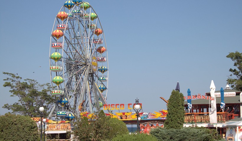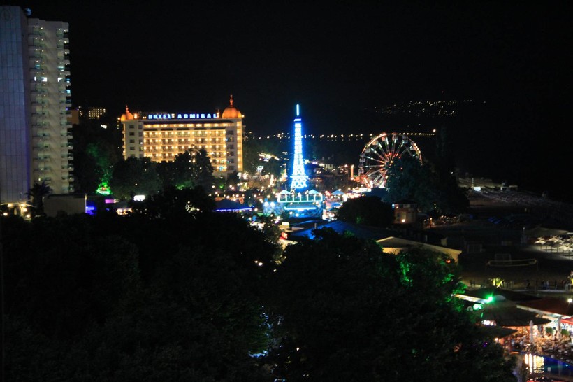 У Золотых песков отличная главная улица рядом с казино, здесь есть достопримечательности: парк, «эйфелева» башня, на которую можно подняться, множество ресторанов и кафе, рядом – большие отели. Здесь все очень чисто, аккуратно и удобно, но при этом туристов не так много, как в Аланье. Рядом есть колесо обозрения, детям можно покататься на пони, попрыгать на батутах, есть аттракционы, сахарная вата, мороженое. Даже отель «Адмирал» можно записать в достопримечательности, такой он красивый!