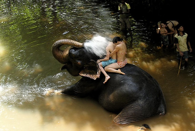 А в этом центре у каждого туриста есть уникальная возможность не только покататься на слоне, но и покупаться с ним, и даже усыновить! Самый трогательный момент, когда слониха рисовала картину.