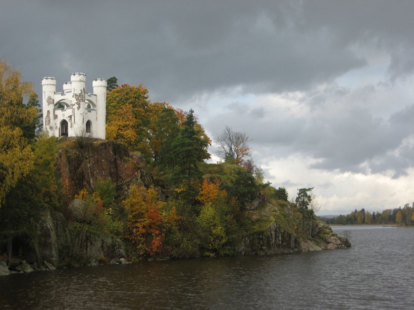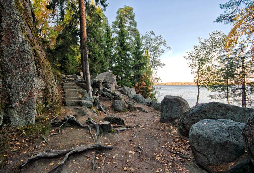 И совсем отдельная моя любовь - это Монрепо, парк на берегу залива. И у меня совсем не хватает слов, чтобы его описать. Там есть некоторое количество павильонов и скульптур, которые фактически просто удачно вписаны в ландшафт, но при этом впечатление производят совершенно неизгладимое. Дело, конечно, еще и в самой природе – это северный лес, не очень густой подлесок, много выходов гранитных скал – ужасно красиво. Мой любимый павильон - Людвигштайн на острове Смерти на высокой скале. Там же рядом с ним - фамильный склеп семейства Николау, и потомки очень просили закрыть остров для посещения. Очень сильное впечатление производит скульптура Вяйнемёйнена; он сидит возле разлома в скале, и к нему сверху наклоняются деревья и кусты. Просто тропинки в лесу очень красивые. От Падающего камня и от обелиска братьям Броглио потрясающий вид на залив. В общем, можно много пытаться говорить словами. Но гораздо эффективнее картинками, наверное. Там невероятно.