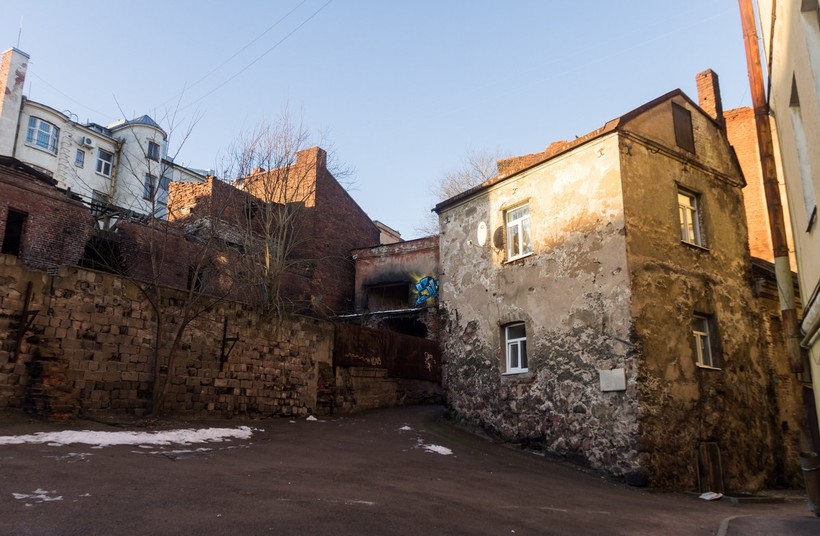 Рядом с портом есть кладбище военнослужащих Земского прихода, там захоронены финские солдаты, погибшие в советско-финских войнах. И стоит небольшой мемориал. Довольно тяжелое место, но тоже часть истории города, и оно произвело на меня сильное впечатление. Рядом с ним то, что осталось от доминиканского монастыря (в советское время там был цех завода, потом сгорел. Сейчас это грустные старые стены). Еще мое самое любимое здание в городе – дом Говинга на Крепостной улице. Когда я была там в последний раз, он был в ужасном состоянии, там еще и пожар был, внутрь входить просто опасно, но он такой невероятно красивый. Даже просто снаружи и то, что видно через оконные проемы. Вроде бы сейчас опять заговорили про его реставрацию.