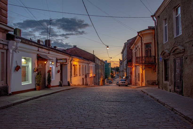 Улица Крепостная. Знаем ли, что она самая длинная в Выборге, ее аж 22 раза пересекают другие улицы? И самая старая улица в городе, главная достопримечательность в Выборге, как главная улица. На улице уже час ночи! Пора и укладываться спать.