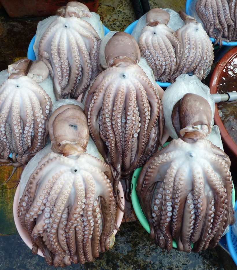 Рыбный рынок Jagalchi - самый большой не только в Пусане, но и во всей Корее. На подходе к рынку ряды с рыбой живой и не очень, здесь же выложены живые еще осьминожки. Множество уличных палаточных кафешек.