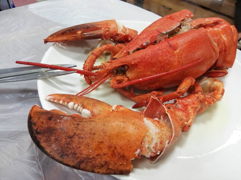 Дальше, сами не поняли как, купили лобстера, хотя изначально шли за рыбой и просто посмотреть. Сразу после оплаты нашего лобстера его понесли куда-то в корзинке и махали нам идти следом. Оказались в кафешке с крикливыми тетками, они требовали с нас с готовку 10.000 W и за обслуживание еще 10.000 W. Мы начали сопротивляться. Но они на своем объяснили, что поздно пререкаться. Мы можем уйти, но наш лобстер уже варится в ИХ кастрюле. Подали его нам уже разделанным. Предоставили перчатки и ножницы.
