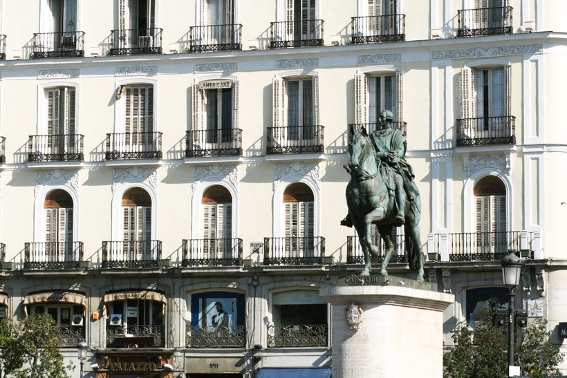 Puerta del Sol (дословно «дверь солнца») считается главной площадью Мадрида. Здесь находится символ Мадрида – Медведь и земляничное дерево, а также памятник королю Карлу III. В центре площади находится точка отсчета всех расстояний в Испании (нулевой километр).