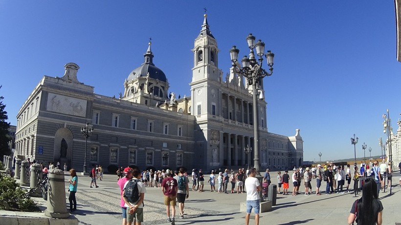 Монархия и религия не разделимы, и поэтому не удивительно, что рядом с дворцом расположился главный кафедральный собор Санта-Мария-ла-Реаль-де-ла-Альмудена. Внутри собора очень светло и очень тихо. В обычный будний день в собор можно зайти и просто посидеть на деревянной скамье в полной тишине и спокойствии, наблюдая как свет играет в витражах, создавая причудливые картины на белых стенах.