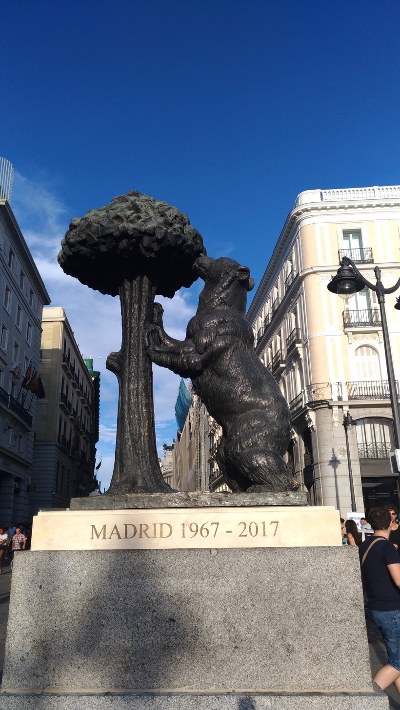 У супермаркета El Corte мы свернули и отправились в гости к мишке на площадь Puerta del Sol. На крыше супермаркета находится смотровая площадка, откуда можно разглядеть Гран Виа.
