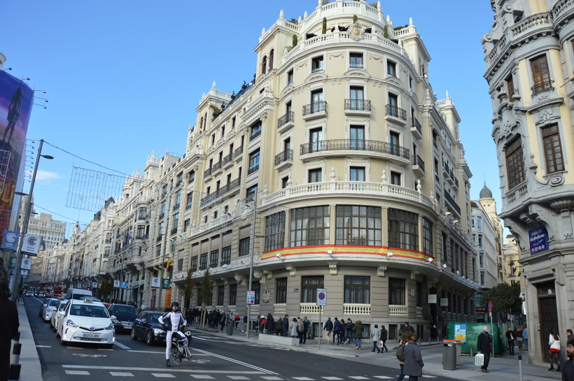 Как и во всех городах Испании, так и в Мадриде есть площадь Испании. В центре площади расположен фонтан, посвященный Мигелю Сервантесу. От площади берет свое начало улица Гран Виа - главная улица Мадрида.На Гран Виа кипит жизнь. Туристы, офисные работники, бездомные, машины, вывески всех знаменитых брендов. Город работает, город живет.