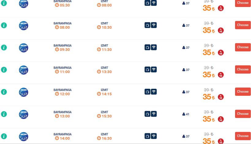 Ниже приведена информация о том, сколько часов вам потребуется, чтобы добраться от Стамбула до Измита, а также приведена примерная стоимость проезда (средняя цена билета) на том или ином виде транспорта.