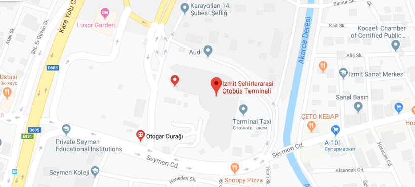 Путь в Измит автобусы преодолевают за 2,5 часа, прибывают они в Измит на автовокзал на улицу Yahyakaptan Mahallesi.