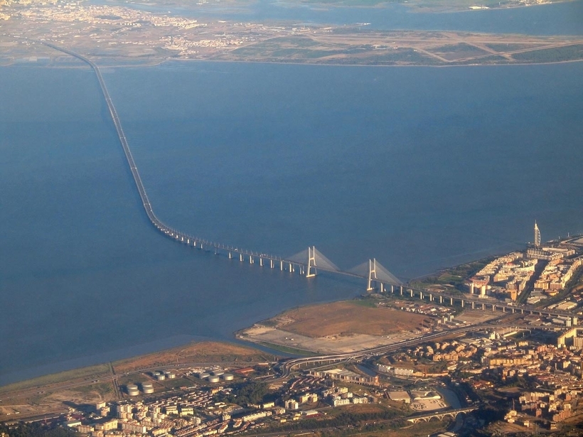 - Возможность увидеть великую реку Тежу (или Тахо, как ее часто называют по-русски). Слово «великая» употребляется здесь не из пафоса, а потому, что размер реки действительно впечатляет. Лиссабон немного удален от океана, но иногда кажется, что Атлантика заглянула в город одним глазком с помощью Тежу. Через реку перекинуто несколько мостов, самый длинный из которых — мост Васко да Гама — тянется на 17,2 км. Представляете? Если ехать по нему со скоростью 60 км/ч, потребуется почти 20 минут, чтобы пересечь реку! Лично я никогда раньше не видела таких мостов.