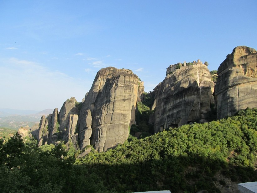 Отдельно хочу сказать про невероятные виды, которые открываются с вершины горы, там есть несколько обзорных площадок и террас, откуда с высоты птичьего полета можно сделать просто умопомрачительные фотографии гор, других монастырей и небольшого городка Каламбака, раскинувшегося у подножья.
