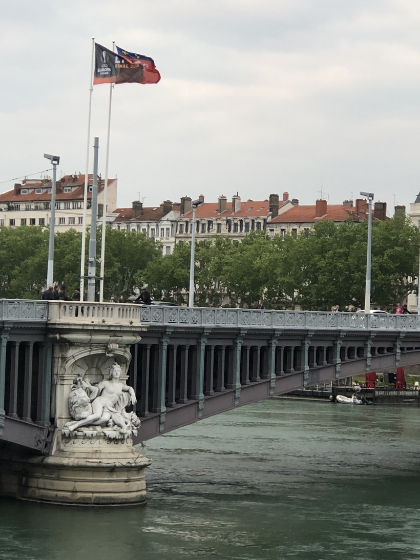 Несмотря на плотный график движения и поджимающие сроки, мы решили остановиться и провести в Лионе хотя бы полдня. Свернув в Сону и пройдя под железнодорожным и основным мостом, мы начали высматривать место для швартовки.