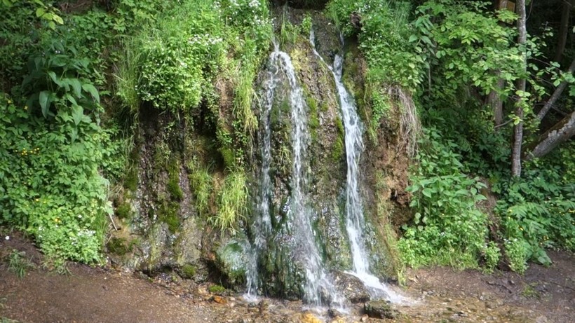 - Долину великолепнейших ключей можно увидеть на берегу реки Нара. Там же находится водопад «Радужный», падающий с пятиметровой высоты. Говорят, что под водопадом есть небольшой проход, но мы не стали рисковать, потому что не хотелось намокнуть в не очень ласковую и прохладную погоду. Самое половодье водопада можно застать, конечно, весной, а самое комфортное время посещения этого памятника природы – летом. Но в летнее время года есть вероятность застать его пересохшим.