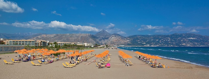 Ради этого пляжа и с другой стороны острова стоит притащиться. Он длинный и широкий, над тобой не нависают отели и рестораны, здесь всем хватает места. Тут нету толп туристов, которые стремятся захватить свободный лежак. Лежаков хватит на всех, и зонтиков тоже! Как обычно на критских пляжах, за зонты и лежаки берут некую плату (обычно 5-7 евро за 2 лежака и зонтик). Сами пляжи – общественные, нет такого, чтоб заборчиком отгородили, а вот за удобства приходится раскошелиться. Кто экономит, может ездить со своими ковриками.