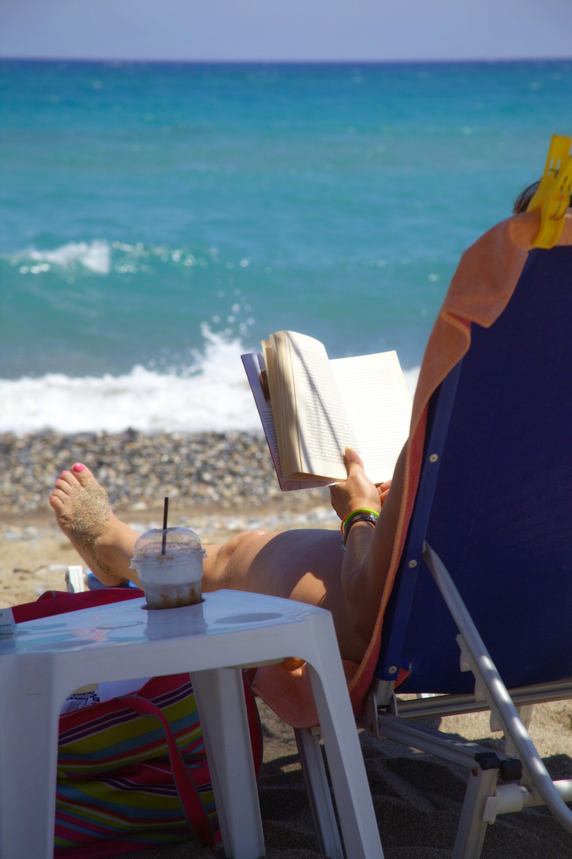 Дополнительным бонусом оказался сервис! Когда мы устроились под зонтиком, то обнаружили на столике под ним заламинированное меню. И тут же к нам подошел хозяин лежаков и близлежащего кафе и все объяснил. За какие-то смешные деньги можно было заказать прямо к лежакам бургеры, картошку фри, коктейли… Все это приносилось в удобной таре. И не надо никуда вставать и идти, лучший вариант для ленивых туристов. Коктейли у них очень вкусные оказались, особенно молочные. Тут же можно взять традиционный ice coffee, на Крите это, в основном, капучино и фрапучино. По жаре очень хорошо пьется.