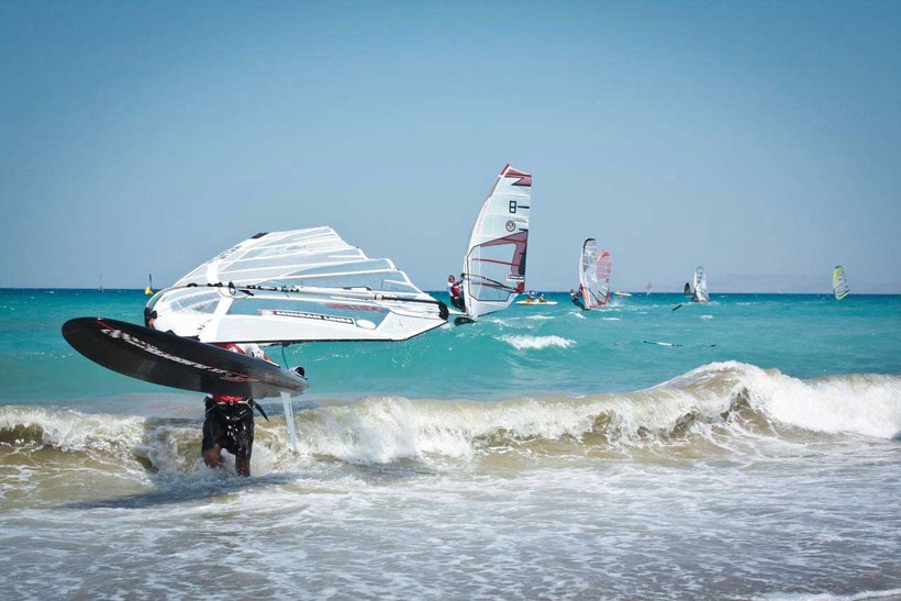 Мелкий песок, не очень много камней и пологий вход в воду – еще одна прелесть этого пляжа. Тут нет камней, по песочку очень приятно ходить, волна небольшая. Детям есть где поиграть. Дальше по пляжу, куда мы не ходили, имеется прокат всего инвентаря, который может понадобиться любителям водных развлечений. Мне кажется, там даже были кайты, каяки и оборудование для виндсерфинга: волна тут классная. Мы видели, как кого-то катали на водных лыжах и как кто-то летал с парашютом над морем. Словом, пляжная цивилизация во всей красе.
