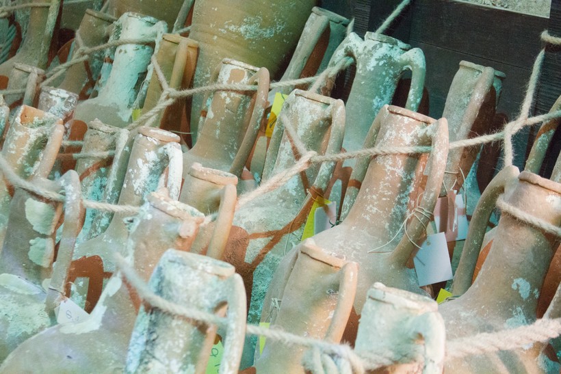 Я не ожидала, что окажется так интересно. У греков вообще все хорошо с информационным сервисом, они дают много сведений на табличках и стендах. Кроме того, здесь нашлось несколько реально интересных экспонатов. Дети в восторгом ощупывали старинные пушки, некоторые из них (пушек, а не детей) были сурово изъедены ржавчиной. Лежали покоцанные жизнью пушечные ядра. Но больше всего мне понравились старинные амфоры, которые подняла со дна морского (вернее, с затонувшего у этих берегов корабля) команда Кусто, специально приглашенная для этих целей.