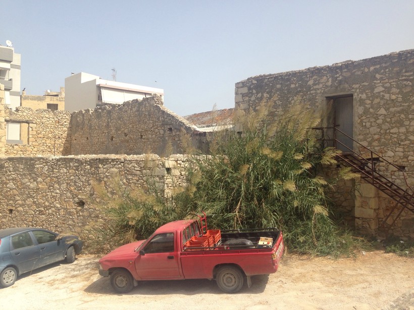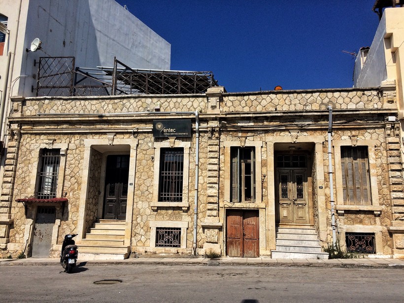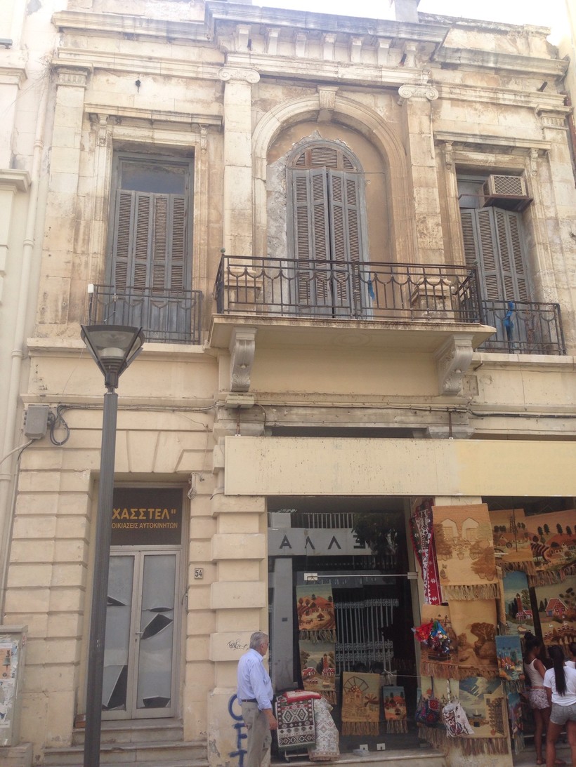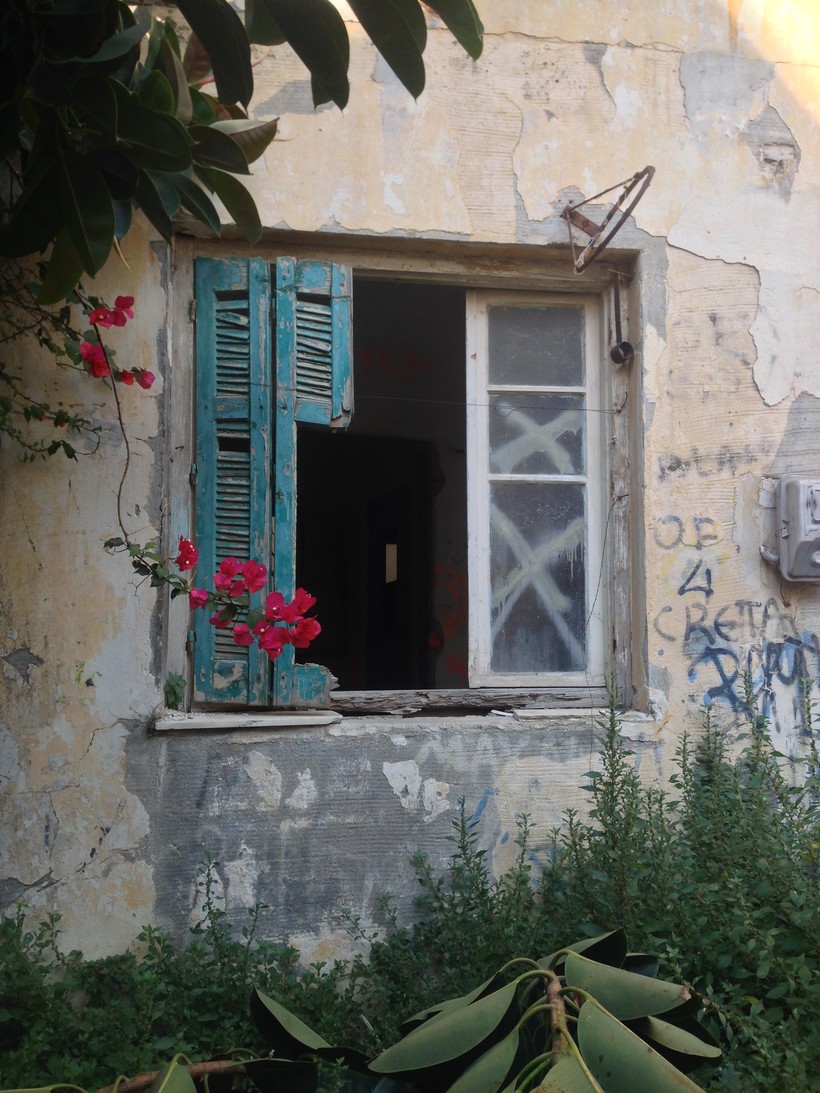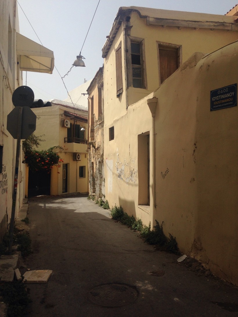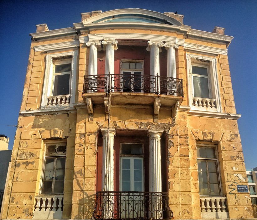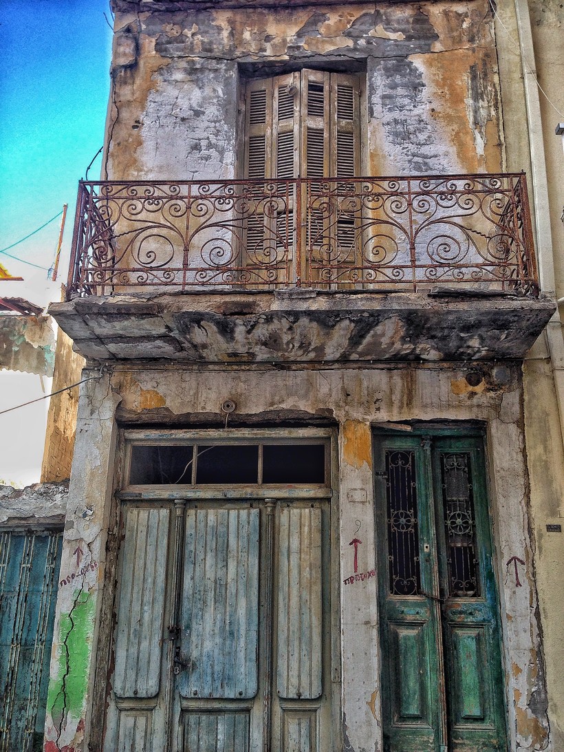 В связи с долгоиграющим греческим кризисом, в Ираклионе за последние года многие здания были брошены. В основном это бывшие кафе, рестораны, магазины, но имеются и жилые покинутые здания среди всей этой вакханалии. Так вот, если вы такой же любитель подобных архитектурных объектов, как и я, то советую не только посещать достопримечательности, но и просто прогуливаться время от времени по узким улочкам. Поверьте, иногда там можно обнаружить совершенно неожиданные стрит-арты или тематическе кафешки, вкупе с полнейшим запустением.