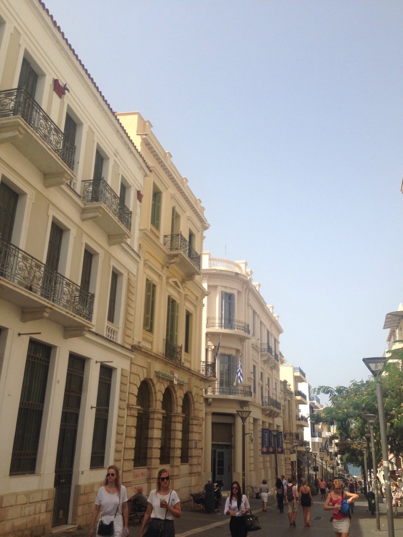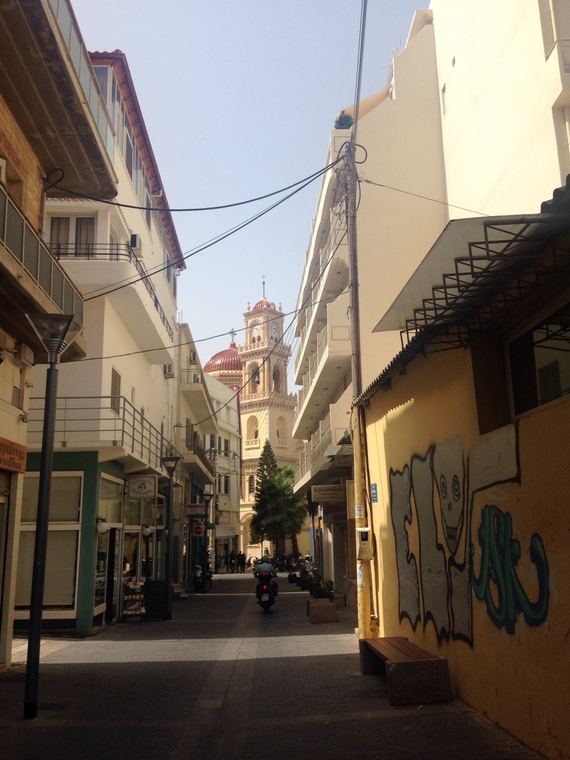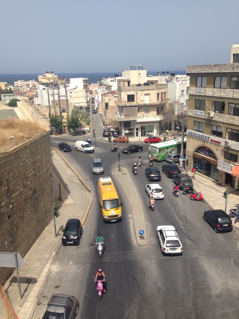С виду Ираклион очень похож на южный европейский городок, весь такой светлый и из-за яркого солнца красочный (голубое небо, синее море).
