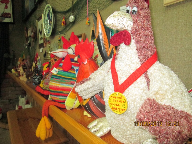 Больше всего в этом небольшом, провинциальном музее мне понравился экскурсовод-хранитель музея. Наверное, именно таким (такой) должен быть музейный работник - женщина за..., хозяйка положения и своего музей, преданная своему делу и знающая историю музея от и до! И сочетание всех этих факторов сделало нашу экскурсию такой интересной и милой). На одном дыхании услышали историю становления и открытия музея, происхождение почти каждого экспоната ( а попадаются и иностранные!!!). Пытались найти ответ на извечный вопрос: а что же было раньше - курица или яйцо? Сделали с полсотни фото всяких интересных петушков, в том числе из стекла, хрусталя, глины, дерева, металла, разноцветных ниток, лоскутков, бисера, ракушек и, конечно, с главным - в стиле стим-панк (немного жуткий даже товарищ). Полюбовались отдельной коллекцией деревянных петухов на разные тематики. Это была наша последняя остановка в Петушках, но такой заряд бодрости и позитива получили на дальнейшее путешествие, что искренне хочется сказать спасибо и отвесить низкий поклон создателям и работникам музея и пожелать дальнейшего процветания!