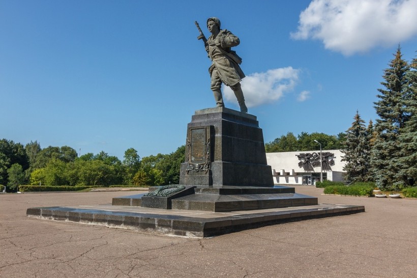 - Памятник А.В. Матросову. Тому самому, который, по официальной версии, прыгнул грудью на амбразуры. Случилось это в районе деревни Чернушки, расположенной чуть севернее Великих Лук, куда прах героя перенесли лишь в 1948 году. Памятник выполнен в лучших традициях советской скульптуры. Сразу бросается в глаза тот фанатизм, с которым боец движется навстречу смерти, и какой-то «балетный» пафос, которым пропитаны его движения. Рядом с памятником горит вечный огонь, а за его спиной находится небольшой краеведческий музей, который, к сожалению, во время моей прогулки по городу был уже закрыт.