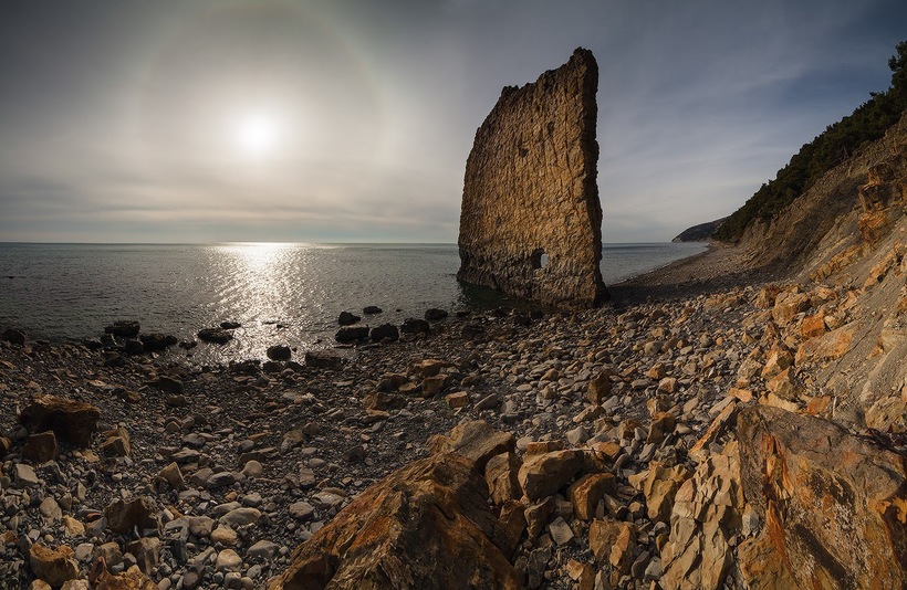 Неподалеку от Джанхота, ну как неподалеку, километров пять пройти придется, есть удивительный природный памятник - очень интересная скала Парус. Смотрится она очень необычно, удивительное природное создание, прекрасный фон для фото.