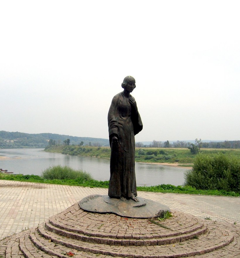 Следующее памятное место Тарусы – набережная. Здесь же городской парк. Прогуливаясь по аллее поэтов, на пути своём встретите памятники, несложно догадаться, что они будут посвящены поэтам и писателям. Аллею открывает памятник Марине Цветаевой. С площади около памятника можно полюбоваться рекой Окой с изгибом ее течения, впадением реки Тарусы в реку Оку и противоположным тульским берегом с Троицкой церковью в селе Бехове.