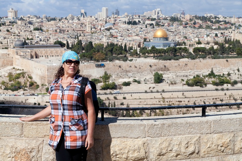 Подниматься туда меньше получаса. С Масляничной горы отлично видно Старый город и гору Сион. На фоне серых зданий еще ярче сверкают купола церквей. Вот церковь Святой Магдалины, а там виднеется Храм Гроба Господня.
