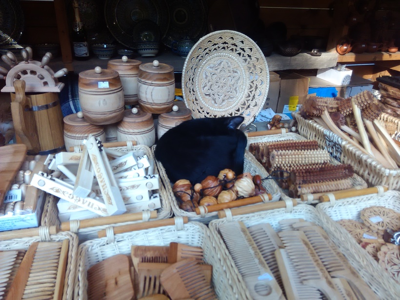 - также можно закупиться товарами народных промыслов: всякими вязаными шалями, носками, ковриками, деревянной посудой, вышитыми скатертями и салфетками и т.д. – выбор сувениров и полезных вещей на местном небольшом рынке значительный. А еще почти на каждом прилавке спали котики :);