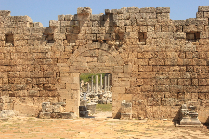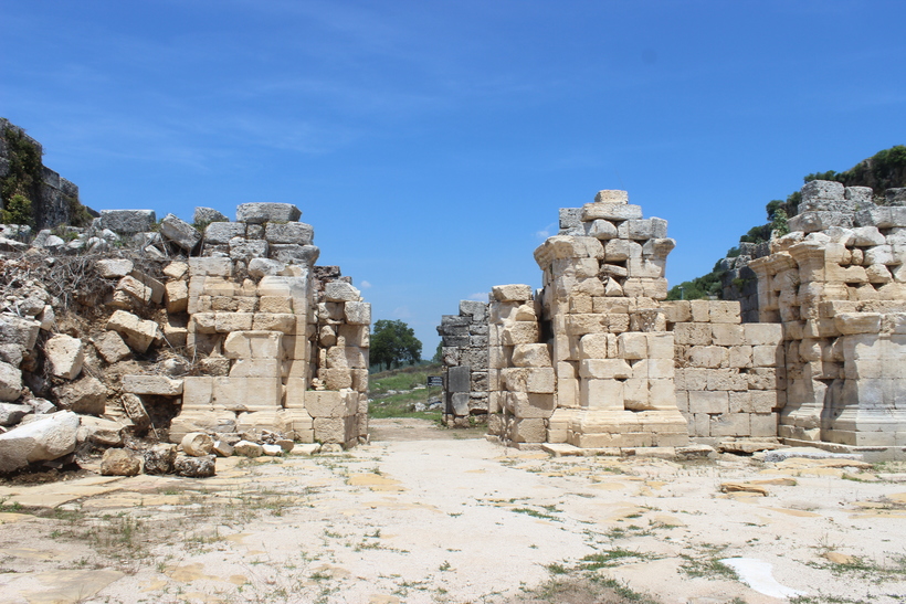 После входа на основную территорию античного города первыми взору открываются монументальные ворота в двойном комплекте. Одни из них относятся к эллинистическому периоду, другие к римскому. Кончено, первый вариант выглядит намного внушительнее.