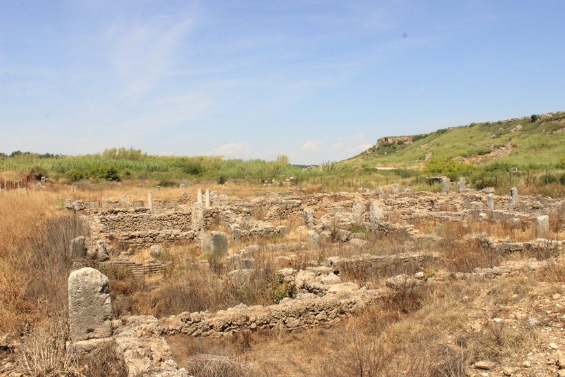 Далее, вернитесь к водному каналу и пройдите за него. Там обнаружится подъем на верх - в Акрополь или верхний город. Не упустите возможность забраться на гору, ведь сверху открывается фантастическая панорама на город и прилегающие районы. Чуть далее от обзорной площадки находятся еще не раскопанные здания. Я предполагаю, что виднеющиеся крыши - это базилики.