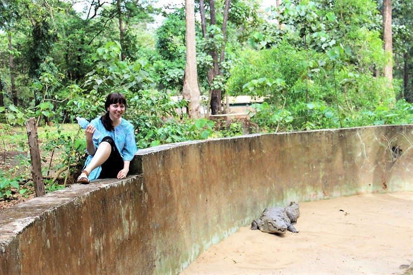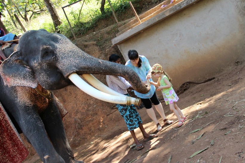Кормим слоника. Задабриваем перед тем, как будет нас катать. После ушастиков поехали и к другим животным, что живут в зоопарке неподалёку. Я, глупая женщина, даже взобралась на ограждение с крокодилами (за что потом получила втык от охранника).