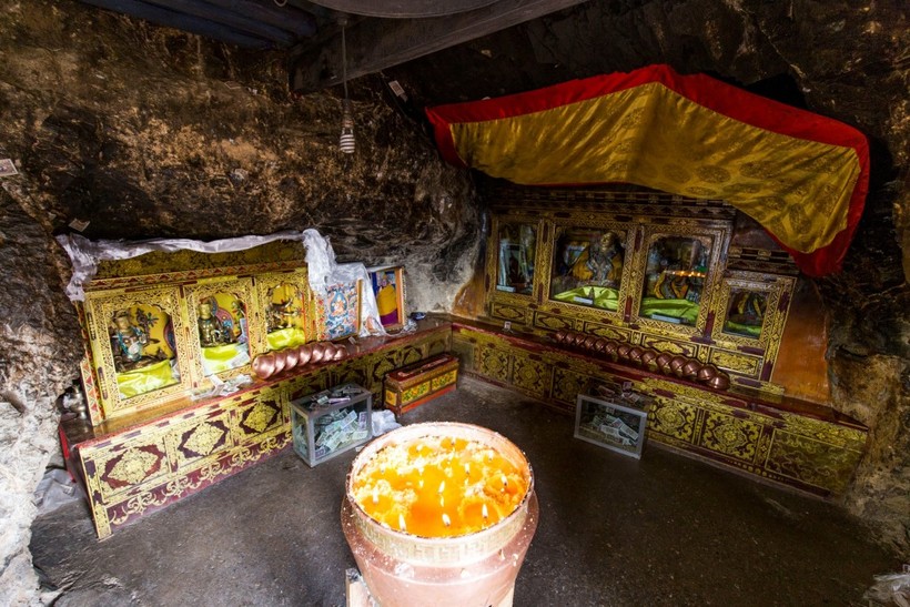 Второе обязательное место для посещения — Drak Yerpa. Это пещеры в горах для углубленной медитации. Многих монахов в них замуровывали заживо. Подыматься к ним тяжеловато. Тем более, гид нам постоянно говорил о симптомах горной болезни. Но меня спасала мысль, что в рюкзаке лежат две бутылки с кислородом, которые необходимо купить, если планируете уходить в горы.