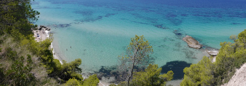 На Кассандре почти все пляжи отмечены голубым флагом! Море чистое, красивое, бирюзово-синее. Это не значит, что совсем нет, например, водорослей. Бывали дни, когда был сильный прибой, и на берегу были водоросли, но нас это совсем не расстраивало. Главное, что вода чистая с химической точки зрения и, кстати говоря, вообще не было медуз. Но были морские ежики, чуть позже заострю на них внимание!
