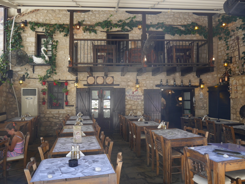 Не знаю, закономерность это в Кассандре, или нам просто очень повезло, но мы столкнулись с очень добрым, теплым и радушным отношением местного населения. Нам везде улыбались, махали руками (в смысле здоровались), очень часто греки переходили на русский язык (!!!), чего мы никак не ожидали. Оказывается, многие из старшего поколения учили русский в школе. Если мы заходили в таверну, и там был хозяин, он обязательно встречал нас у входа, либо здоровался издалека и что-то очень эмоционально говорил на греческом, обязательно улыбался нашей дочке, что-то говорил ей и норовил погладить. Нашу дочь со светло-русыми волосами вообще стремились все погладить, наверное, у них дефицит светлых девчонок. Кроме того, все надписи дублировались на трех языках, одним из которых был русский. Не в каждой стране увидишь такую картину. И вообще греки очень близки нам по духу, так как они на 98% православные христиане, поэтому считают нас братским народом.
