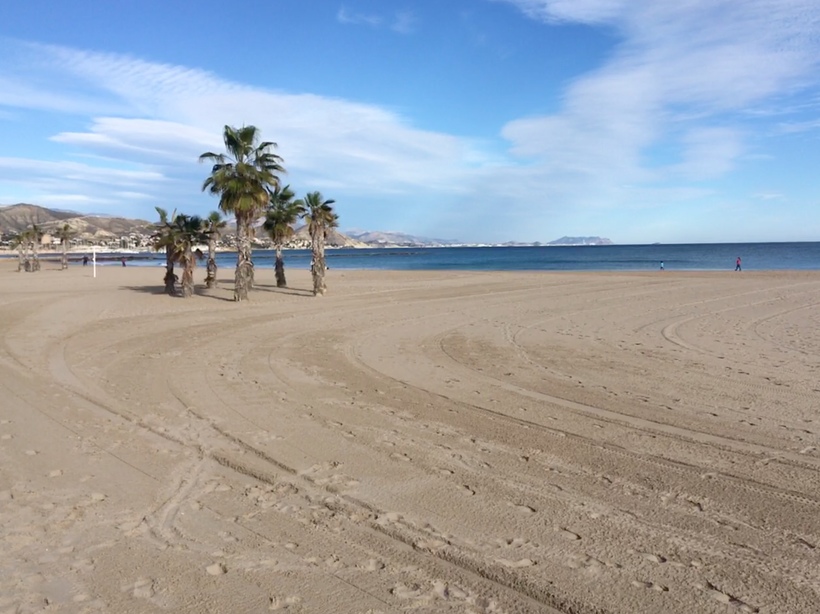- Узкий и достаточно многолюдный пляж. При этом я почти не заметил в центральной части города отелей, выходящих на первую линию. В общем, для пляжного отдыха Аликанте подходит не так хорошо, как другие города Коста Бланка.