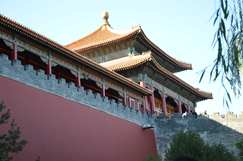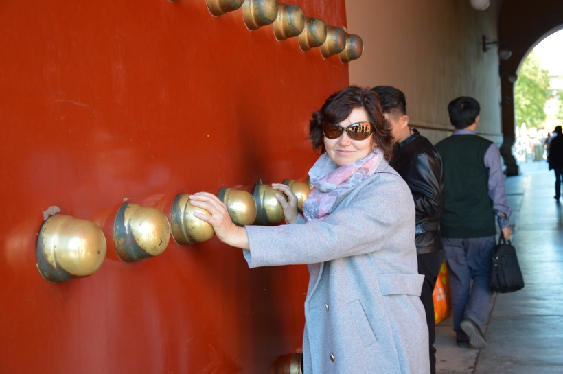 К плюсам. Сразу же расскажу о прогулке в Императорском дворце или, как его называют, Запретный город. Вот это была самая приятная утомительная часть поездки. Какой же он, запретный город, огромный! Если смотреть с высоты, то территория дворца по форме большой квадрат. Просто пересекая его от начала до конца по прямой, я брела часа три, не меньше. А ведь можно было бы еще свернуть налево-направо, там такое же большое расстояние до границ. Чтобы осмотреть территорию дворца полностью, на мой взгляд, нужно пару дней. А как интересно разграничена территория внутри. Проходя через ворота будто попадаешь в зал под открытым небом, а за следующими воротами новый зал и еще один и еще.