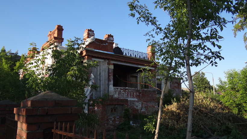 - Особняк Хлебникова. А вот за него очень обидно. Судя по тому, что фасад здания был завешен какими-то лохмотьями, оно как бы на реставрации, но создается впечатление, что на него просто всем наплевать. А жаль, ведь если его нормально отреставрировать, это был бы действительно интересный объект.