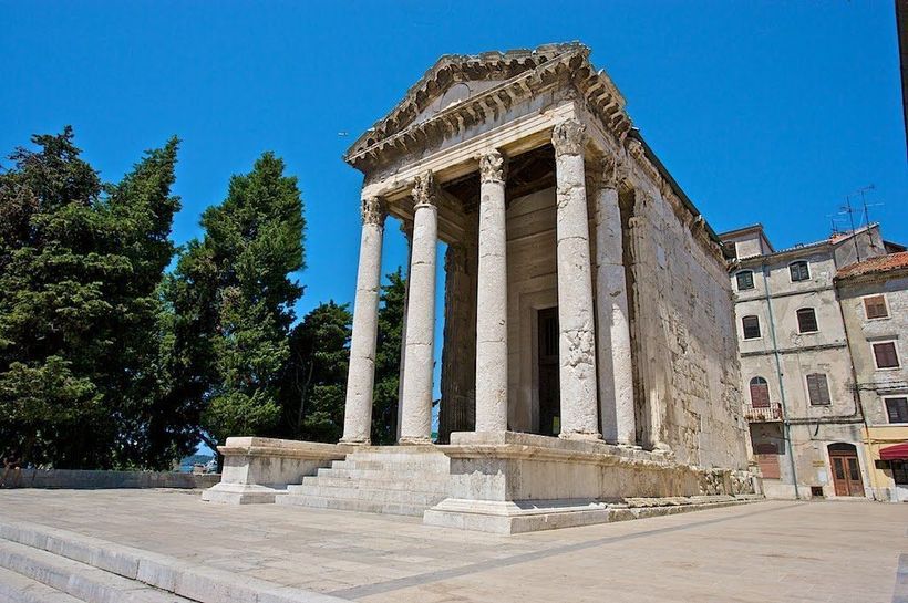Еще один важный памятник римского наследия в Пуле — это храм Августа. Сооружение выглядит как классический античный храм из учебников по истории древнего мира. Помнится, в один из вечеров группа немецкоязычных молодых людей, скорее всего это были студенты-археологи, расположились перед храмом и рисовали его с натуры.