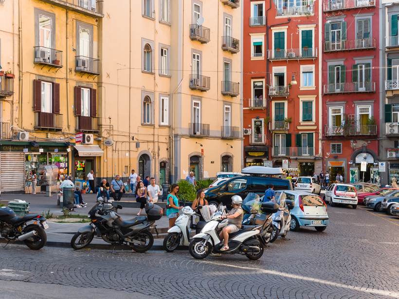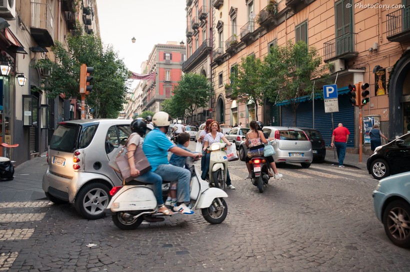 Но, повторюсь, ехать в Неаполь однозначно надо. Днем тесный, бегущий, шумящий, вечером он раскрывает свое очарование. Здесь характерное для всей Италии количество двухколесного транспорта. Его много. Для неопытного туриста - очень много. Так что будьте осторожны, чтобы не окончить свою жизнь под мотороллером.