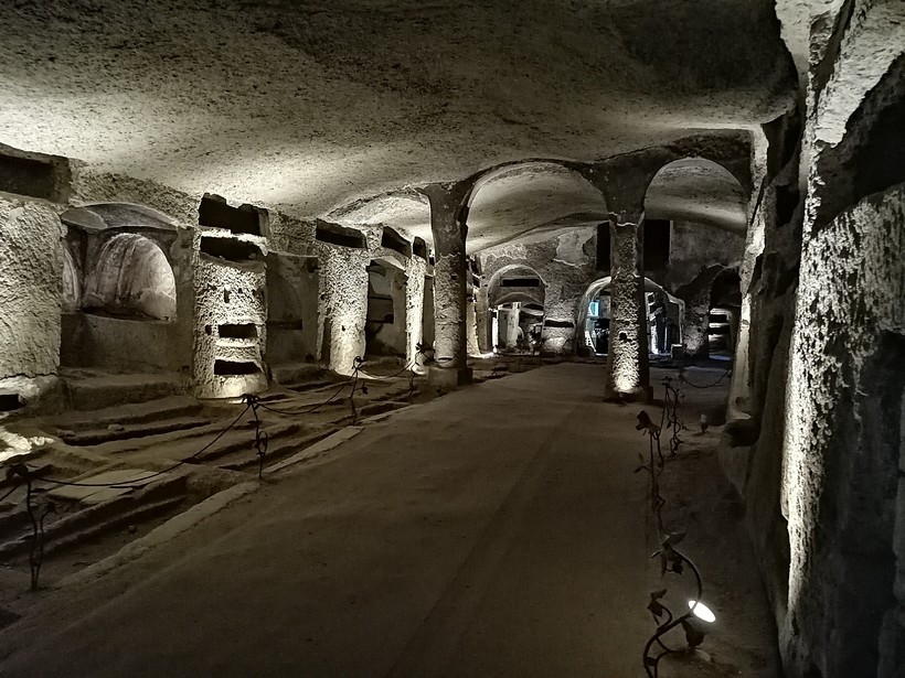 Одно из самых запоминающихся мест в Неаполе, в меру таинственное и дружелюбное! В стоимость билета входит посещение сразу двух катакомб и экскурсия с гидом на английском языке. Место это открыли для посещения совсем недавно, но с каждым годом туристов все больше, хотя поток неравномерный (в одном лабиринте густо, в другом почти пусто).
