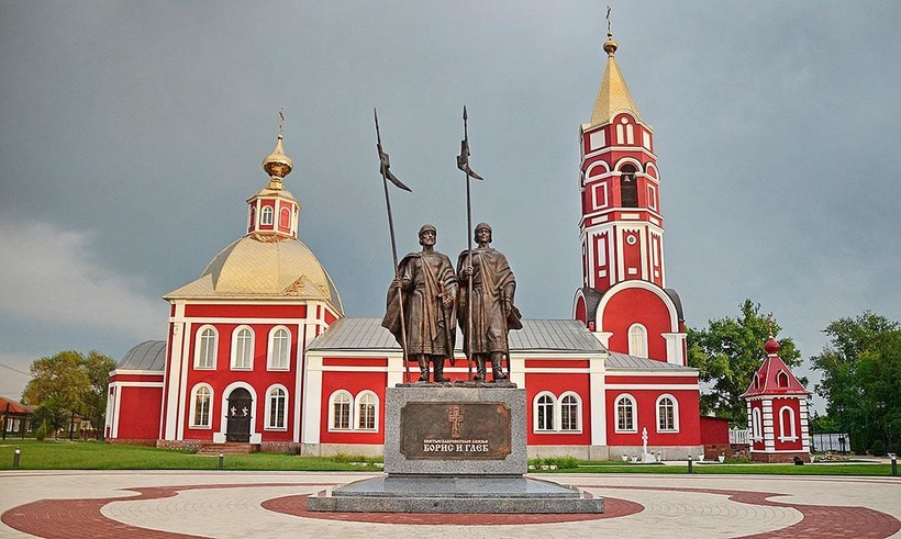 Это одна из старинных церквей, которая почти идеально отреставрирована, по крайней мере, по моему взгляду. Изначально была построена в честь братьев-князей миротворцев Бориса и Глеба. Территория храма ограждена металлическим забором, нас встретил камень с надписью: «Здесь городу начало, стоять ему в веках». Именно отсюда начинается история города, здесь очень приятно гулять: чисто и ухоженно, особенно под звон колоколов. Воочию мы увидели памятник и представили, как выгладили эти братья.