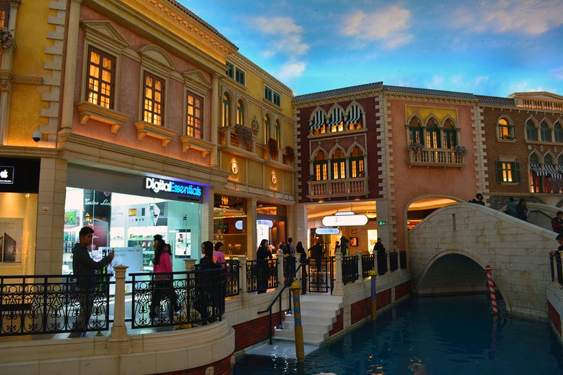 Я скажу так, если Гонконг шокирует, то Макао окончательно сражает на повал. Вы только представьте себе торговый центр, оформленный в стиле веницианских улочек, с настоящими каналами, мостами и голубым небом с облаками. Это не моя фантазия, а реально существующий центр. Просто разрыв мозга - лучше одни раз увидеть, чем сто раз услышать.