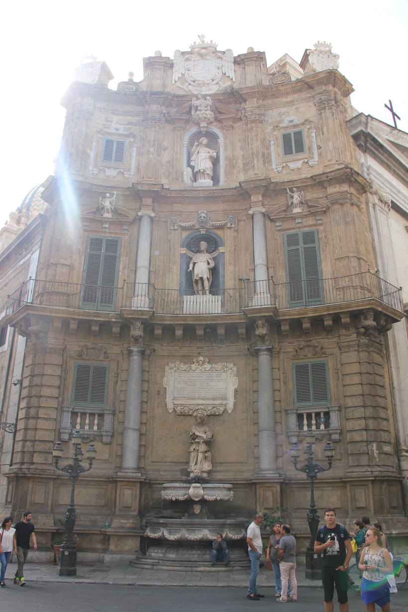 Далее наш путь лежал к фонтану Претория на одноименной площади. Фонтан представляет собой три чаши, вокруг которых развернулись сюжеты мифологии, представленные греческими богами и богинями, нимфами, скульптурами животных и масок. Кстати изначально сицилийцы были против данного фонтан и прозвали его фонтаном позора. Что могу сказать, да статуи обнаженные, как и принято было раньше, но ничего особо низко морального они не изображают.