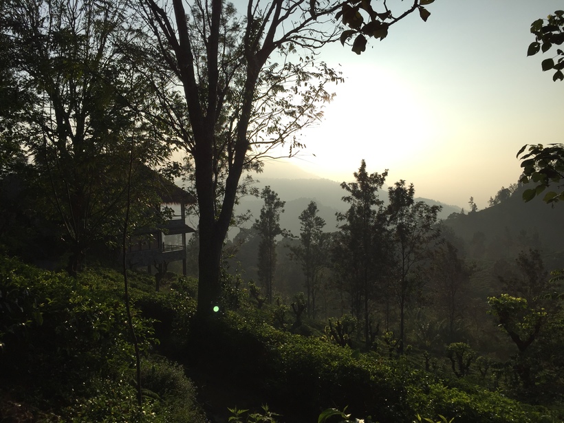 Огромное здание, но внутри спишь в палатке. Такие же веселые палатки стоят в округе, посреди чайных плантаций. Просыпаешься утром, открываешь палатку, а перед тобой бездна красоты ущелья и зеленых холмов Эллы.