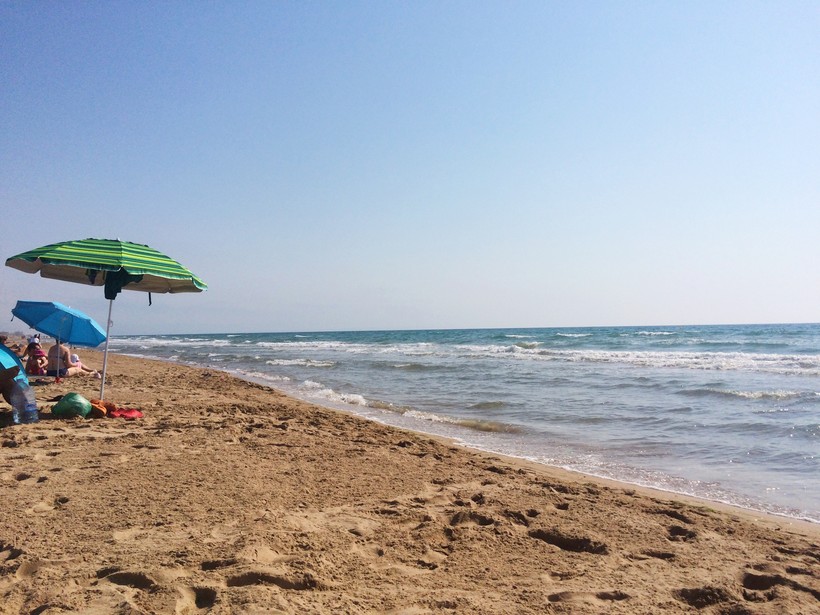 Мы были в августе, и в это время с погодой просто безумно повезло! Все десять дней солнечно, тепло, дул приятный ветерок с моря. Хотя, когда уезжали в начале сентября, то погода резко испортилась, словно сказала: «Осень наступила – пора вам отчаливать, сезон закончился!». Море теплое, песок тоже, но не раскаленный солнцем, так что спокойно бегали босиком. Правда, не во всех местах можно было спуститься в воду, ибо большую часть побережья занимали скалы. Из неприятного – на пляже мало общественных туалетов, мы нашли всего два на 7 км.
