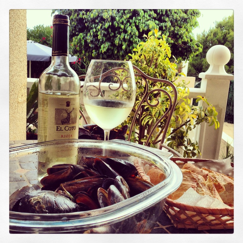 На набережной много кафе, ресторанов, магазинов. Все эти заведения по испанской традиции работают в первой половине дня, закрываясь на длинную сиесту (приблизительно с 12.00 до 18.00, а то и 19.00), и вновь открываются вечером, когда солнце начинает клониться к закату. В ресторанах подают отличные морепродукты, местные вина. Все это можно приобрести и в местных супермаркетах, на рынке или в маленьких магазинчиках, а приготовить самостоятельно, что мы и делали. Так получается намного дешевле.